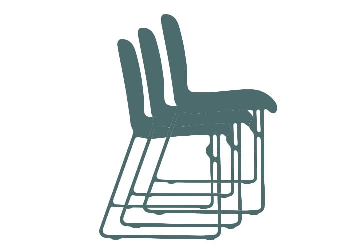 Der Vorteil dieses minimalistischen Rahmens liegt im geringen Gewicht des Stuhls. Das Gewicht beträgt nur 7 KG. So kann ein einzelner Mitarbeiter die Stühle aus- und wieder einräumen. Außerdem sind die leichten Stapelstühle mit Hilfe einer Transportkarre leicht zu bewegen.